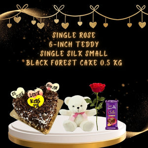 Celebrate love with our Adorable Love Expression Combo, a perfect blend of sweetness and affection. The Love Expression Black Forest Cake, a delectable symbol of love, takes center stage. Paired with a delicate Single Rose, a charming Small 6 Inch Teddy Bear, and a luxurious Single Silk chocolate, this combo is a complete celebration of love. Share this delightful ensemble to create cherished moments on any special occasion.