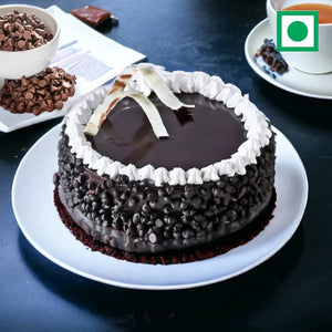 The Chocolate Chips Blackforest Cake is a delightful twist on the classic dessert, introducing the playful crunch of chocolate chips. This cake features the traditional layers of moist chocolate sponge, each soaked in a cherry-infused syrup for that signature Black Forest taste. Between these layers lies a rich, whipped cream interspersed with a generous scattering of chocolate chips, adding a new dimension of texture and a burst of chocolatey goodness in every bite. Adorned with swirls of cream, cherries, and more chocolate chips on top, this cake is a chocolate chip lover's paradise, presenting a familiar favorite with an extra sprinkle of joy. It's a perfect blend of tradition and whimsy, ideal for those who enjoy a classic with a tasty twist.