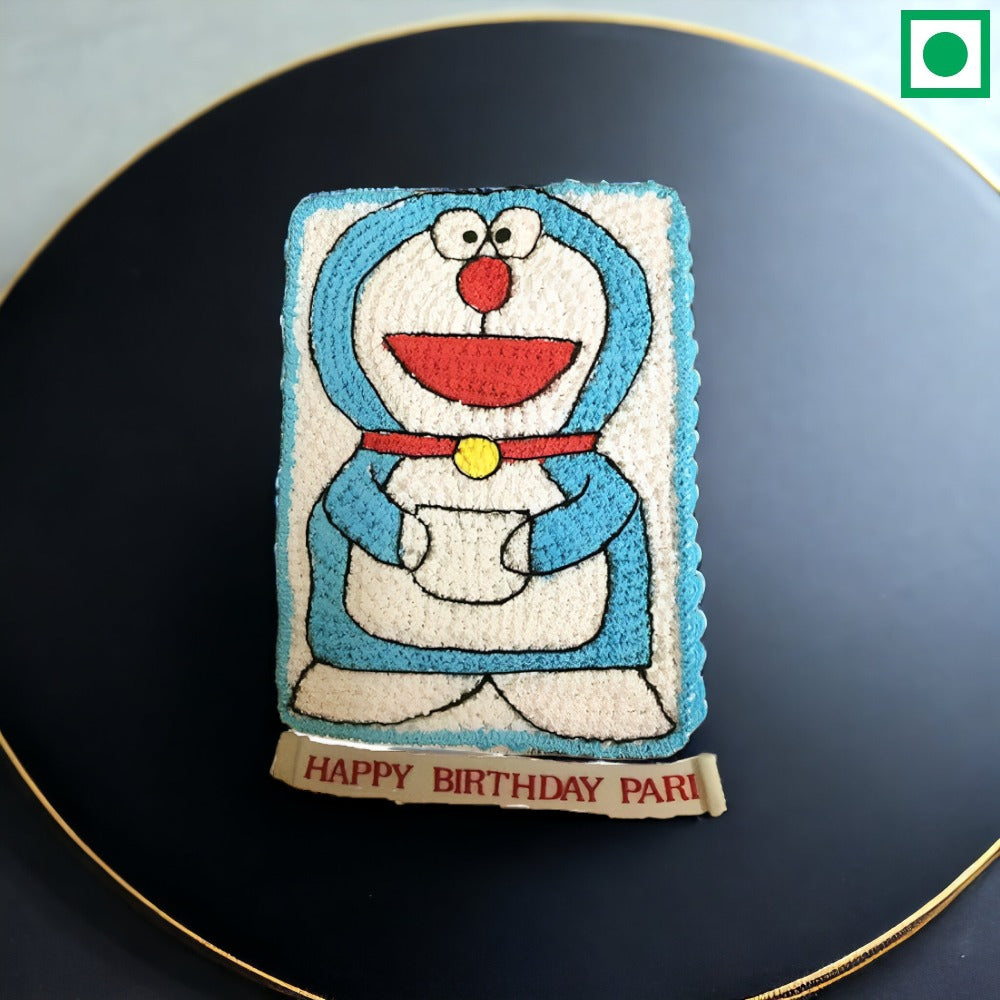 Each slice offers a delightful mix of soft, moist cake and sweet, smooth fondant, making it a delightful treat for young taste buds. This cake is not just a dessert; it's a delightful centerpiece that brings smiles and laughter to kids' parties, making birthdays and special occasions truly magical. Perfect for Doraemon fans, this cake is a charming and delicious tribute to one of the most beloved characters in the world of animation.