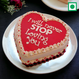 Express your love with our Endless Love Strawberry Cake. A heart-shaped strawberry cake with 'I Will Never Stop Loving You' written on top. Experience reliable delivery - same-day, fixed-time, midnight, and early morning. At Bakebuddy, we're dedicated to 100% eggless expressions of love. Every slice is a promise. Seal your love in sweetness.