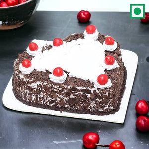 The Heart Shaped Classic Blackforest Cake is a romantic rendition of the much-loved dessert, specially designed to celebrate love and affection. This charming cake combines the rich, moist chocolate sponge layers that are the hallmark of any Black Forest cake with a luxurious soaking of cherry liqueur, which deepens the flavors and adds a touch of elegance. The heart shape of the cake makes it an ideal gift for a significant other, especially on occasions like anniversaries, Valentine's Day, or as a sweet gesture of love. Adorned with fluffy whipped cream, dark cherries, and chocolate shavings, this cake is not only a feast for the taste buds but also a beautiful expression of the heart.