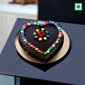 Embrace the spirit of affection with our Heart Shaped Gems Chocolate Truffle Cake, a confection that's as expressive as a heartfelt embrace. Crafted with passion, this cake features a tender, chocolate truffle center, its richness a testament to the finest cocoa. The truffle's velvety texture is complemented by a moist, dark chocolate sponge, each layer subtly infused with a luxurious blend of chocolate and cream. Encased in a smooth, embracing ganache, the heart shape speaks of love, while the surface dazzles with an array of colorful chocolate gems, each piece a gemstone of sweetness that adds a playful crunch. This cake is not just a dessert, but a grand gesture, a celebration of love and chocolate that's designed to be shared with that special someone, or to make any moment memorable.