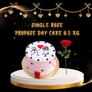 Make your proposal unforgettable with our Heartfelt Proposal Duo. The Propose Day Cake, a sweet declaration of love, forms the heart of this ensemble. Paired with a delicate Single Rose, this combo is a simple yet powerful expression of your emotions. Create a moment that will be cherished forever, as you embark on a journey of love and commitment with this heartfelt and elegant combination.