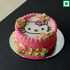 The Hello Kitty Cake for Kids is a delightful creation that brings the beloved character to life in a delicious and visually appealing form. Shaped like Hello Kitty's iconic face, this cake is a perfect blend of artistry and flavor. The moist layers of sponge cake are carefully crafted and adorned with smooth, vibrant fondant, capturing every detail of Hello Kitty's charming features, from her whiskers to her bright bow. Each slice reveals a heavenly combination of soft, moist cake and sweet, velvety fondant, creating a delightful experience for young taste buds. This cake isn't just a dessert; it's a captivating centerpiece that adds a touch of cuteness to any celebration, making birthdays and special occasions truly magical for kids. Perfect for Hello Kitty enthusiasts, this cake is a charming and delicious treat that brings smiles and joy to little faces, ensuring a memorable and delightful celebration.