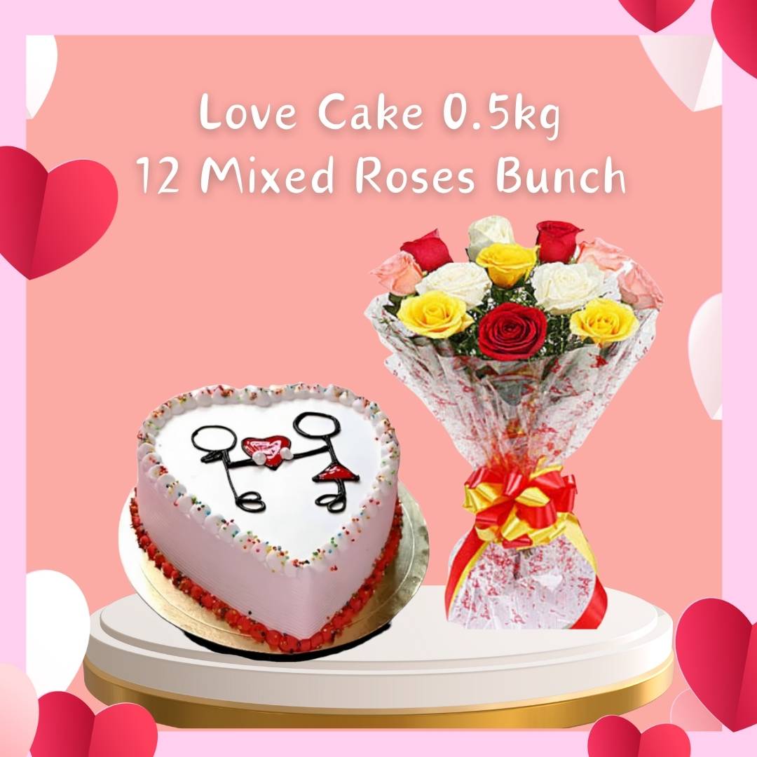 Experience the Love Symphony Propose Day Combo, a harmonious celebration for Propose Day. The Love Cake, a decadent delight, takes center stage. Accompanied by a stunning ensemble of 12 mixed roses, this combo is perfect for expressing your love on Propose Day. Elevate your special moments with the rich flavors of the cake and the vibrant beauty of mixed roses, creating a moment of pure love and romance.