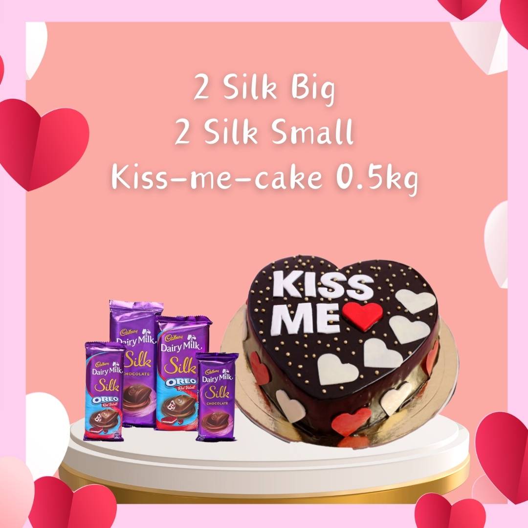 Savor the moment with our Silken Kiss-Me Designer Delight Combo, a perfect ensemble for Kiss Day. The Kiss-Me Designer Cake, a visual and culinary masterpiece, takes center stage. Accompanied by the silky goodness of 2 Big and 2 Small Silk chocolates, this combo is crafted to add a touch of luxury to your Kiss Day celebration. Elevate your special moments with the unique design of the cake and the smoothness of silk chocolates, creating a moment of pure delight.