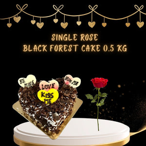 Delight your senses with our Sweet Affection Black Forest Combo. The Love Expression Black Forest Cake, a delectable symbol of love, is the heart of this ensemble. Paired with a delicate Single Rose, this combo is a simple yet elegant expression of your heartfelt emotions. Indulge in the sweetness of the cake and the beauty of the rose, creating a delightful moment to cherish.