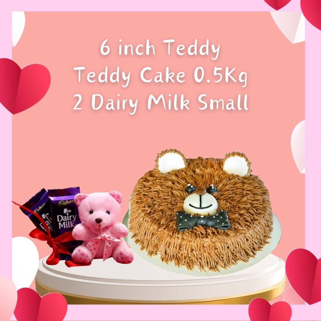 Embrace the sweetness of Teddy Day with our Teddy Day Sweet Embrace Combo. The Teddy Day Cake, a delightful creation, takes center stage. Accompanied by a cuddly Small Teddy 6inch and the tempting goodness of 2 Dairy Milk chocolates, this combo is crafted to add warmth to your Teddy Day celebration. Elevate your special moments with the sweetness of the cake and the adorable presence of the Teddy Bear, creating a moment of pure joy and affection.