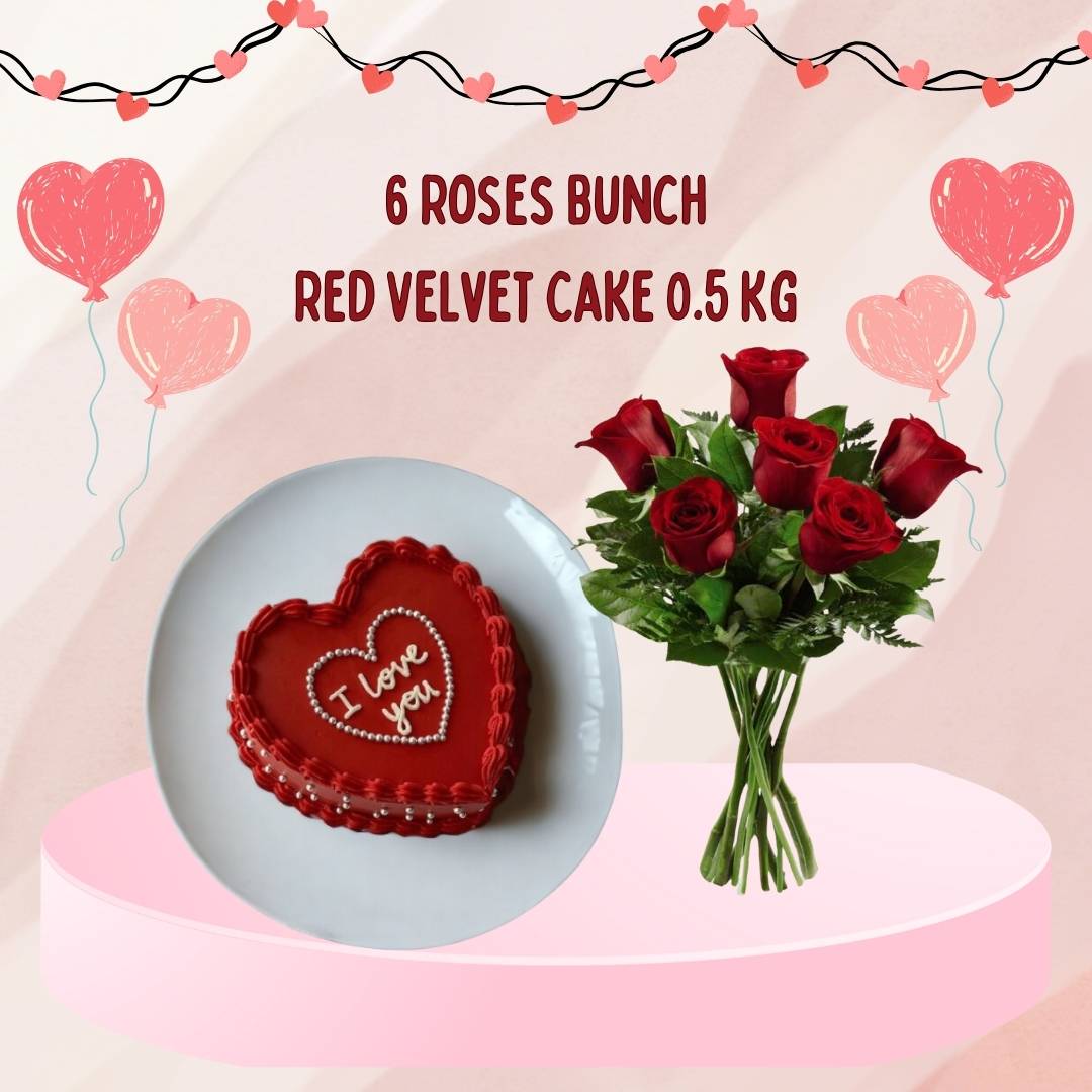 Celebrate love with our Valentine's Rose Bliss Combo, a romantic ensemble for Valentine's Day. The Valentine's Day Cake, a delectable creation, takes center stage. Accompanied by the charm of a 6 Pc Rose Bundle, this combo is perfect for expressing your love. Elevate your special moments with the sweetness of the cake and the beauty of fresh blooms, creating a moment of pure love and joy.